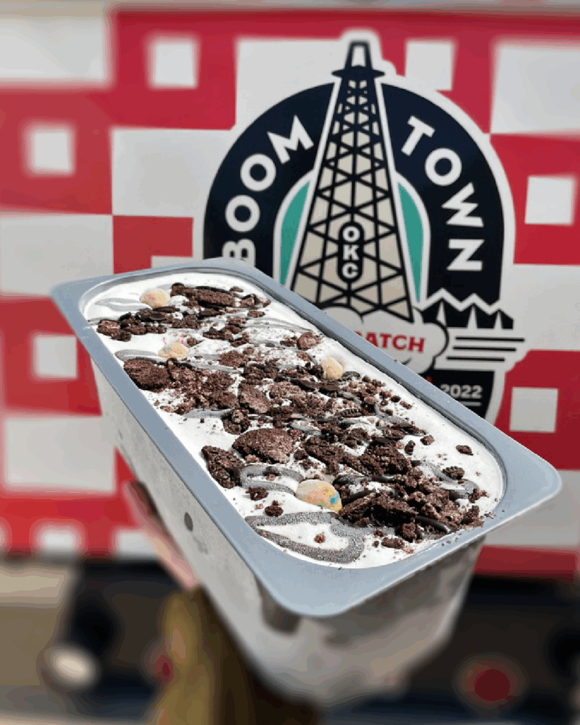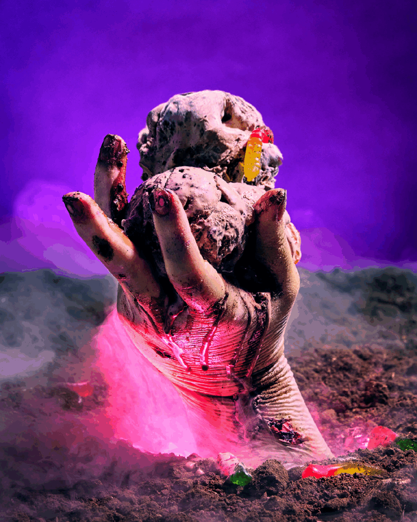 Our creamy milk chocolate ice cream with oreo crumbles and chewy gummi worms