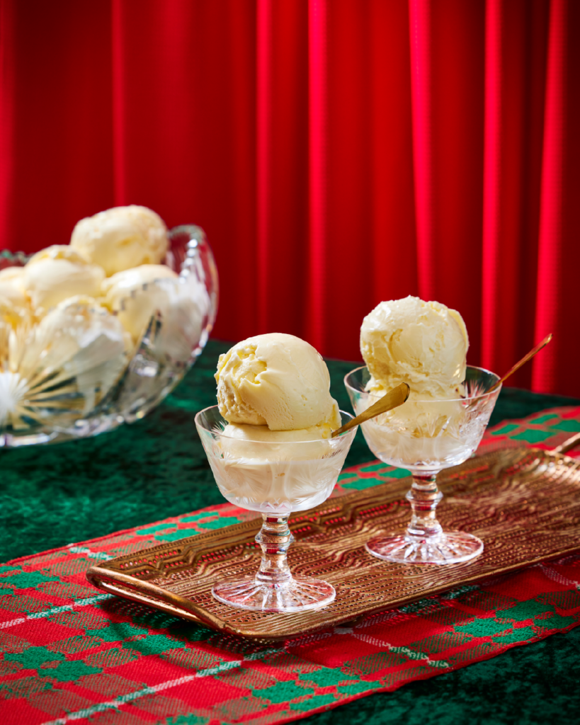 Tart, citrusy yuzu ice cream speckled with cream white chocolate