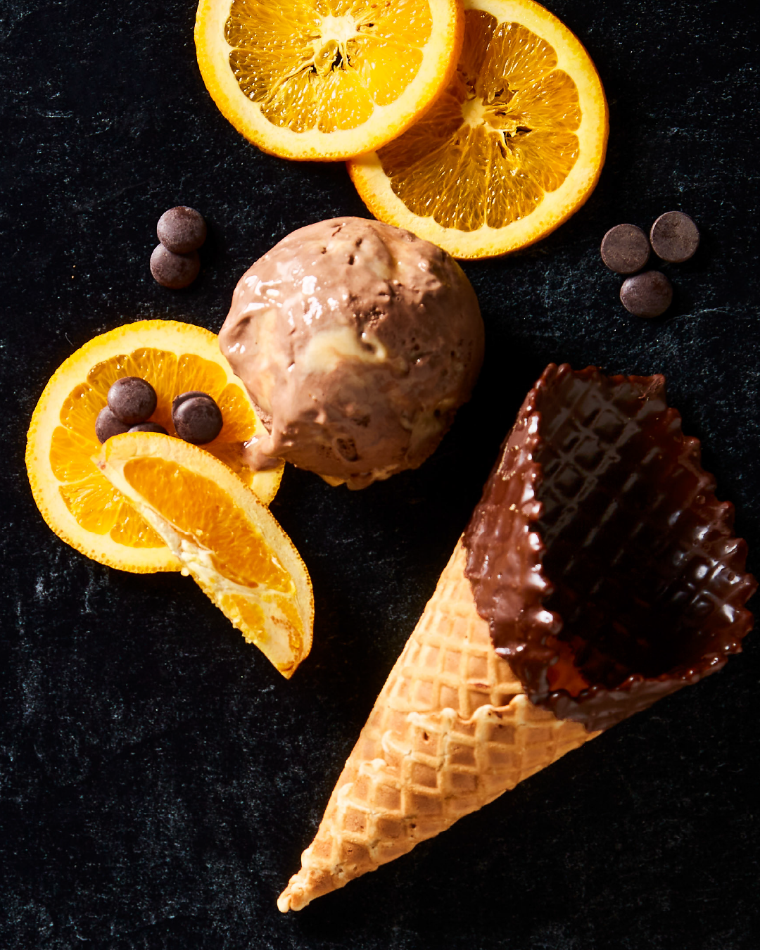 Rich dark chocolate & orange ice cream with a refreshing orange curd swirl